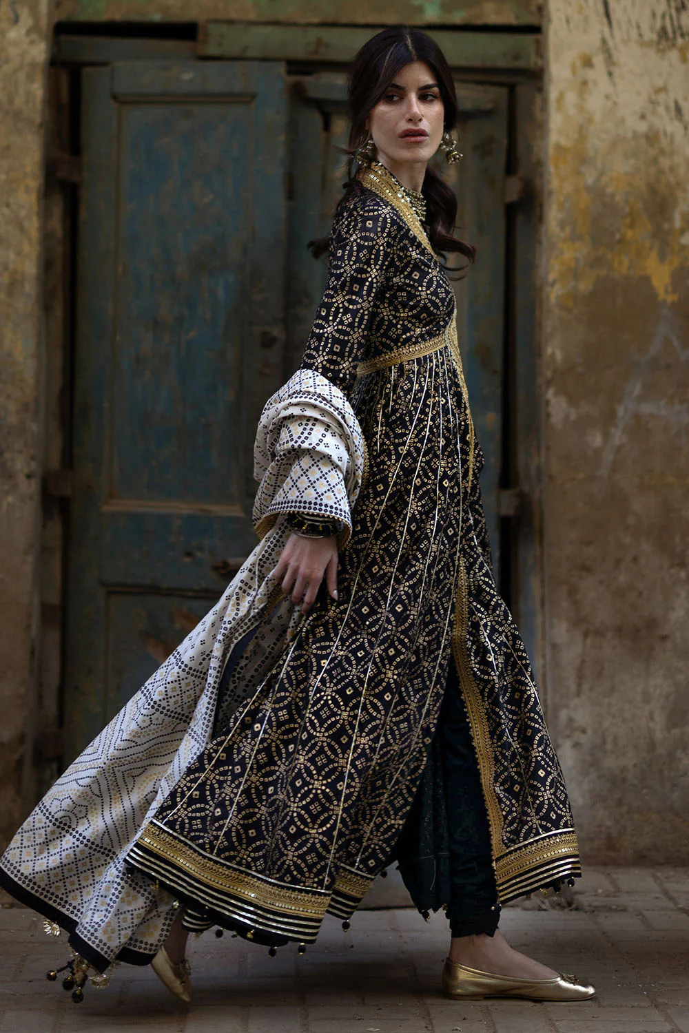 - Gold Printed Lawn Shirt with Embroidered Neckline and Lace for Shirt – 1.75 Meters