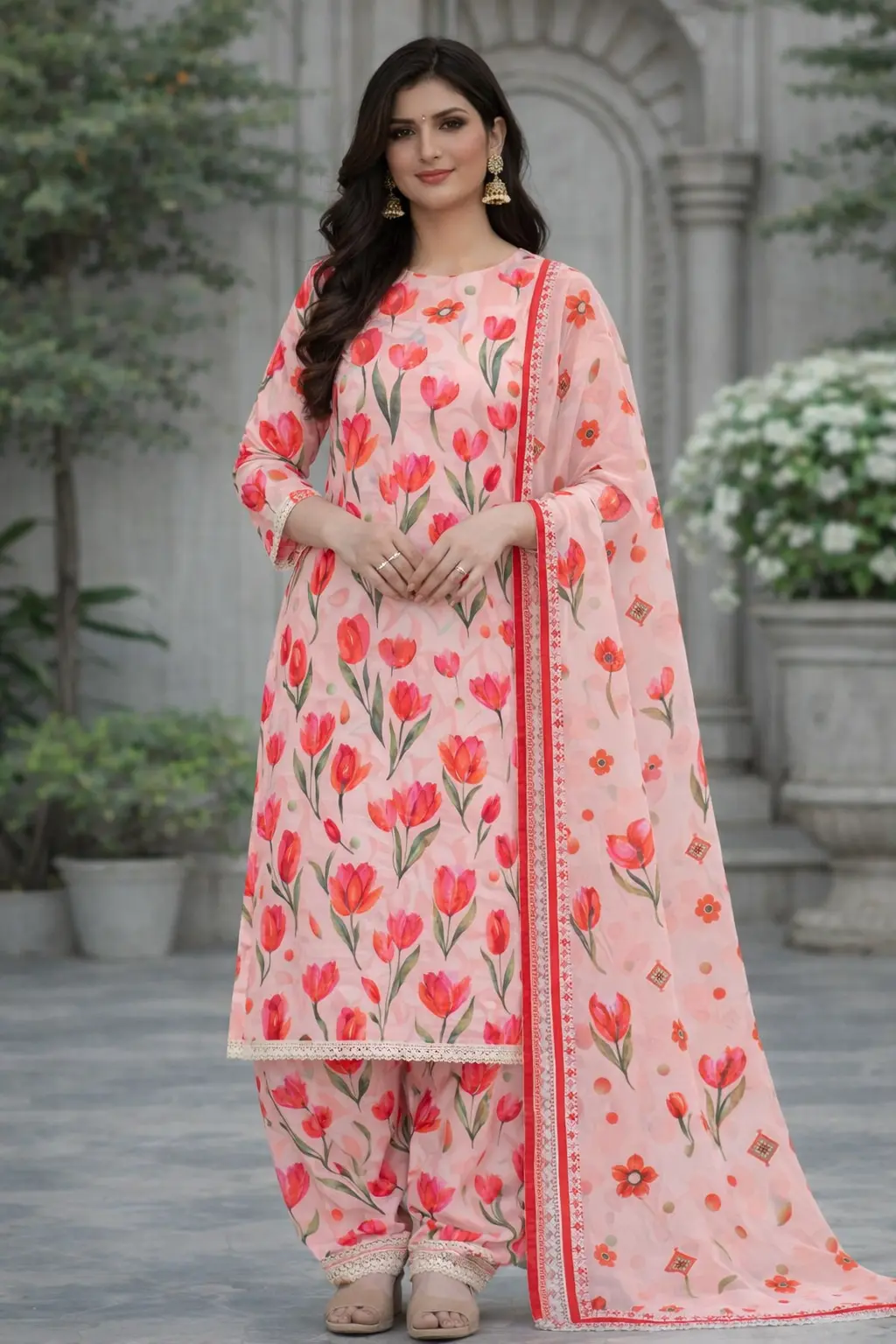 3 piece lawn suit with chiffon tulip design
