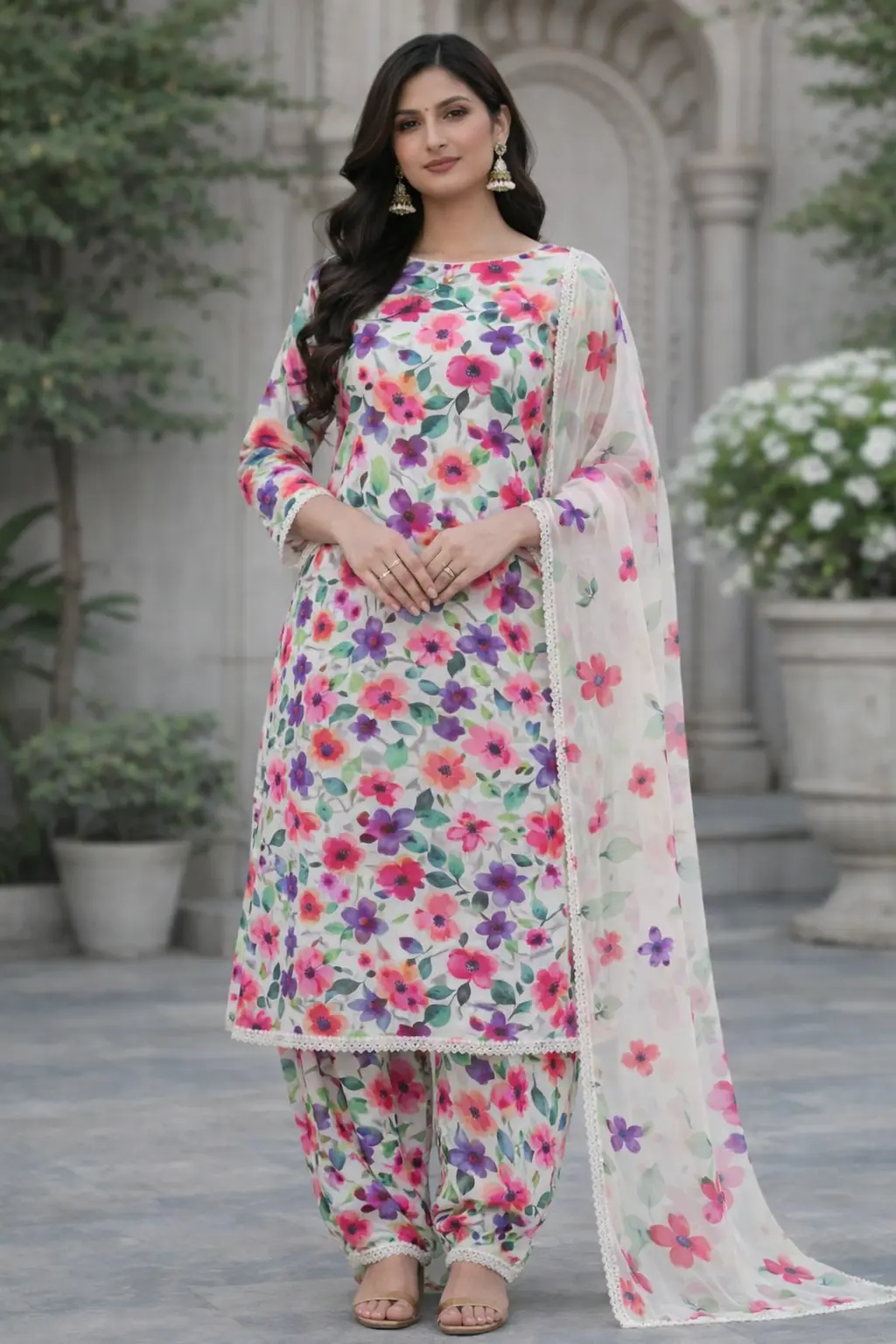 3 piece lawn suit with chiffon vibrant watercolor floral