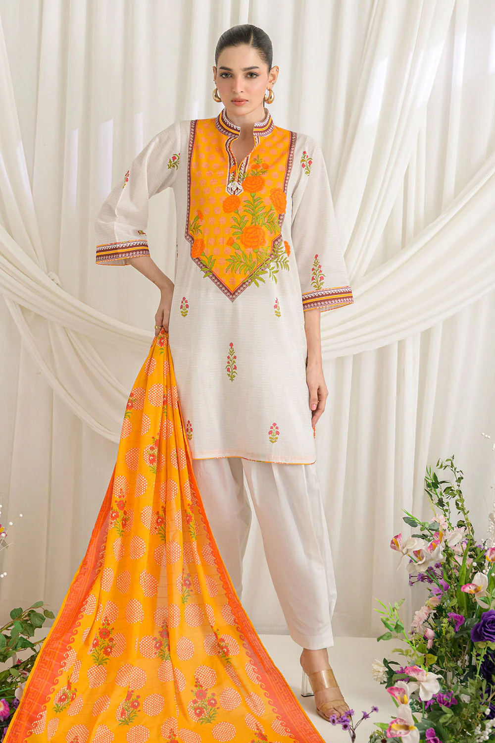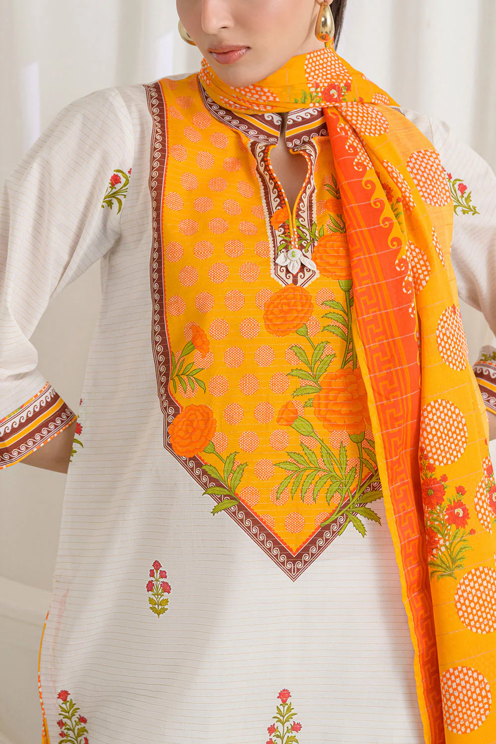 3 Piece Printed Mehsuri Stripe Lawn Suit with Printed Mehsuri Stripe Lawn Dupatta and Dyed Trouser GS-62003 – GulAhmed