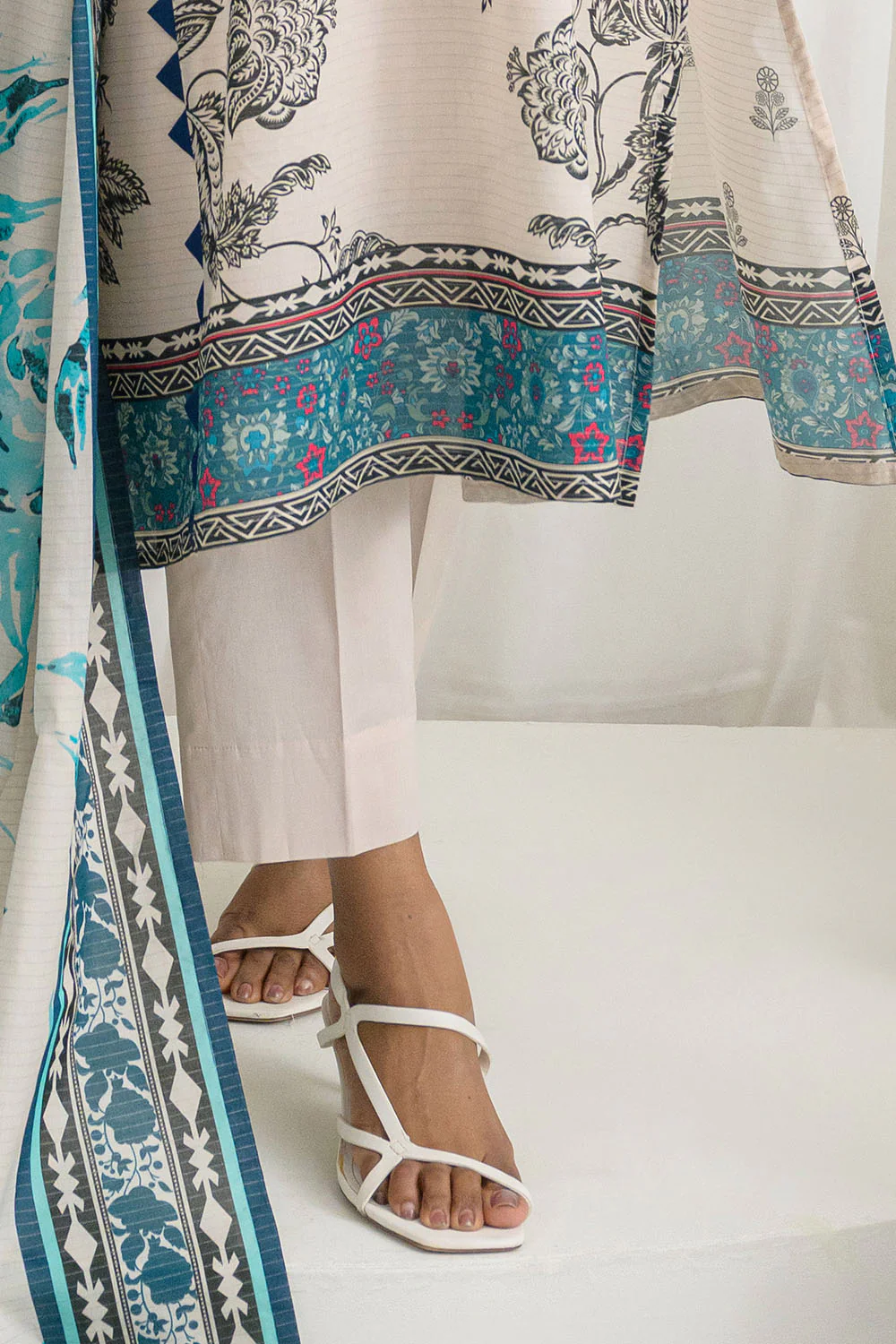 3 Piece Printed Mehsuri Stripe Lawn Suit with Printed Mehsuri Stripe Lawn Dupatta and Dyed Trouser GS-62005 – GulAhmed