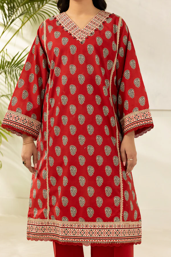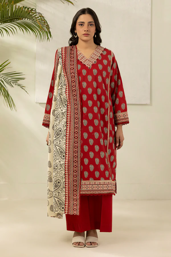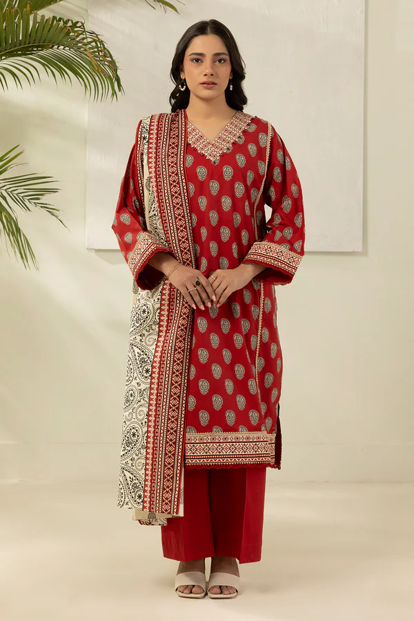 Buy 3 Piece Printed Lawn Shirt Shalwar Dupatta in Red Color