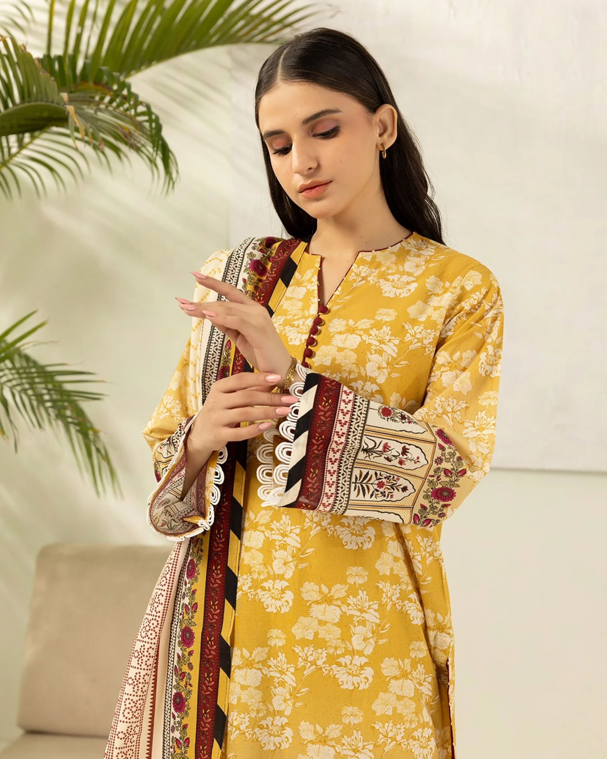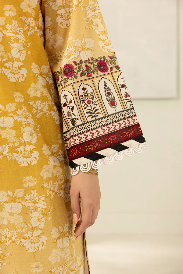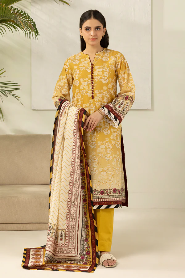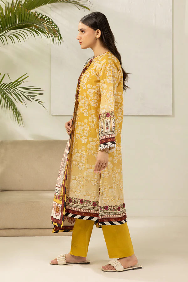 Buy 3 Piece Printed Lawn Shirt Shalwar Dupatta in Yellow Color