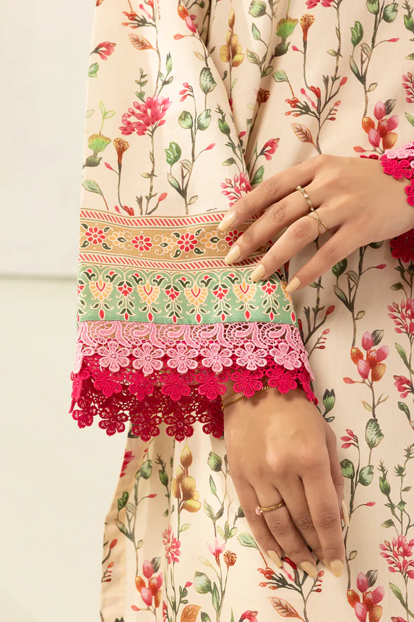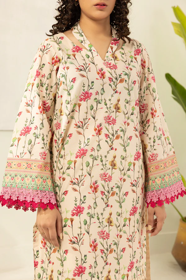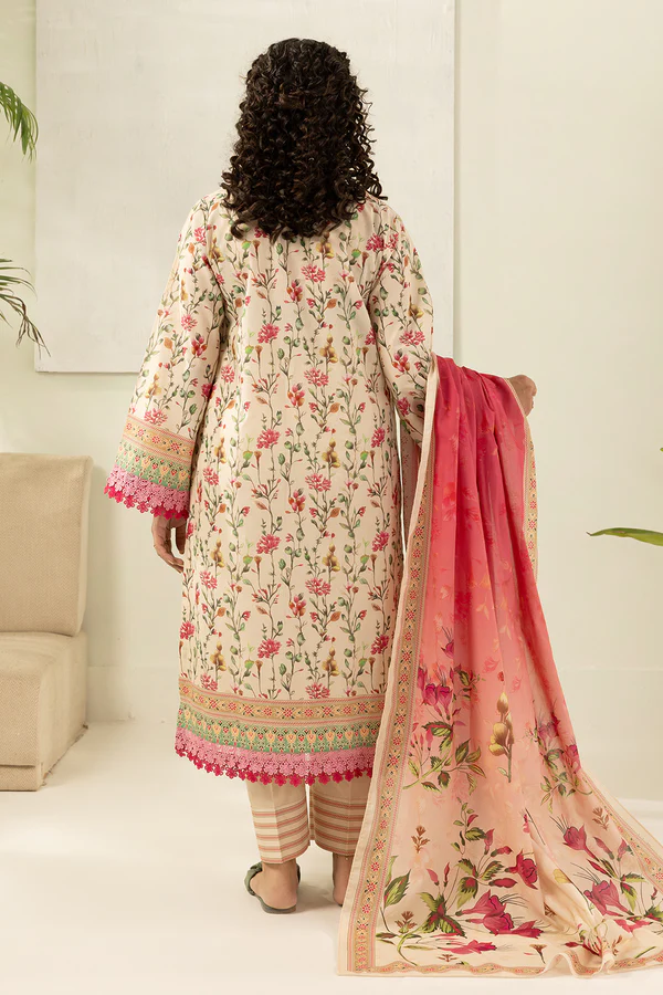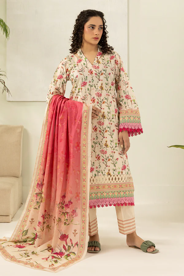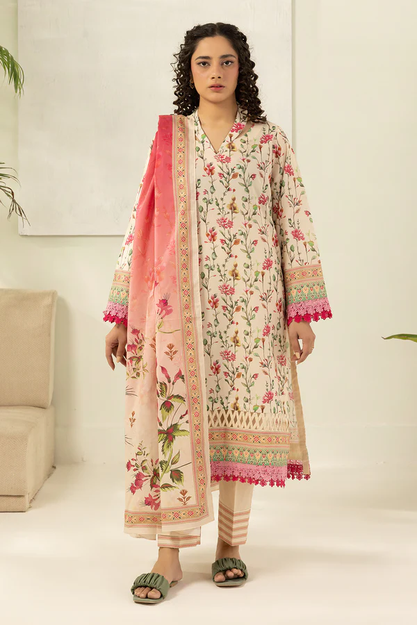 Buy 3 Piece Printed Lawn Shirt Shalwar Dupatta in Off White Color