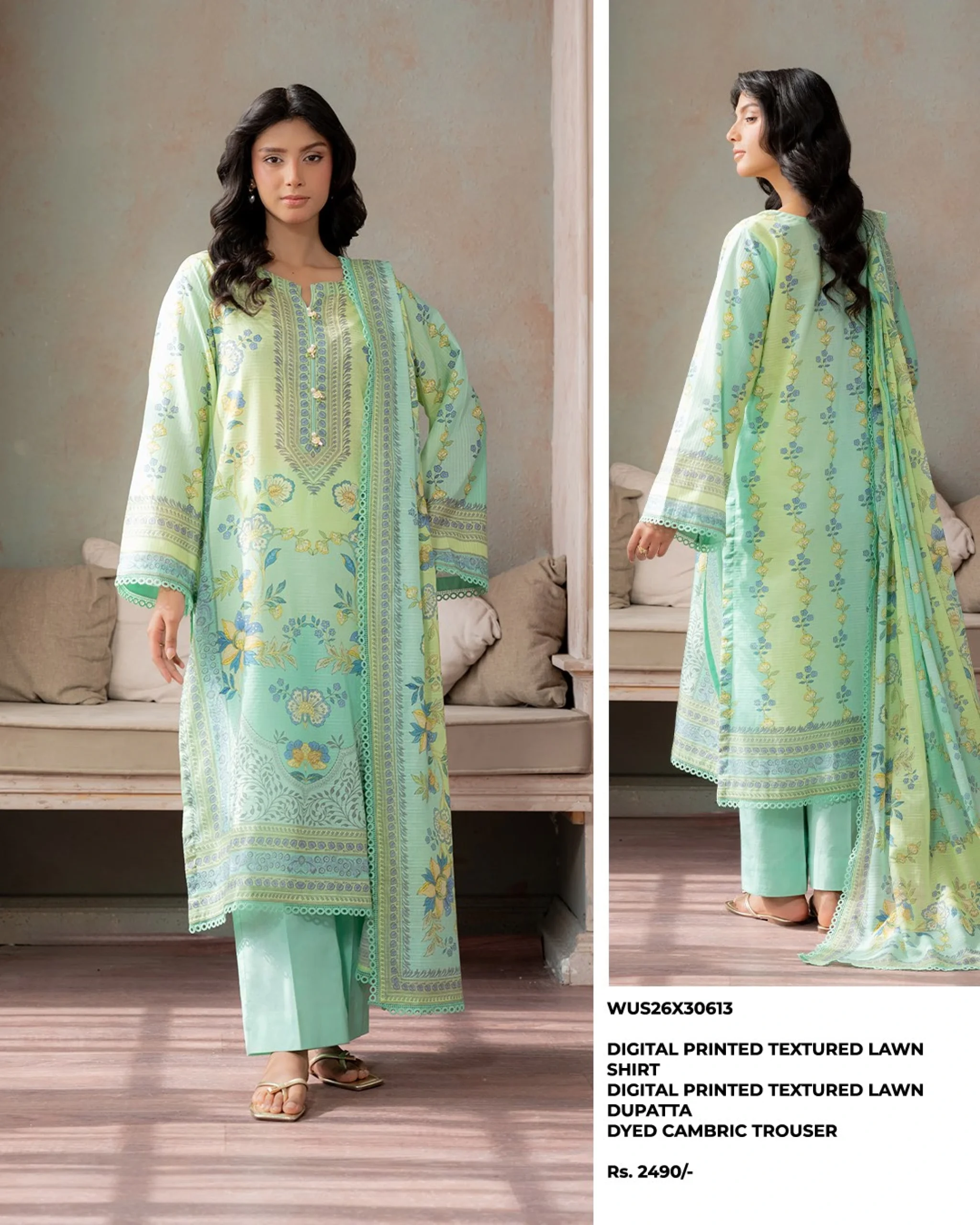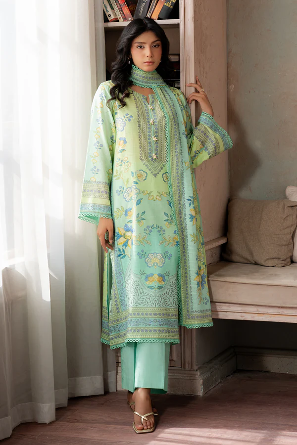 DIGITAL PRINTED TEXTURED LAWN SHIRT – DIGITAL PRINTED TEXTURED LAWN DUPATTA – DYED CAMBRIC TROUSER