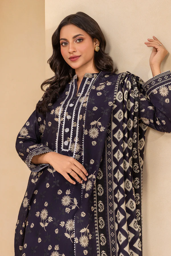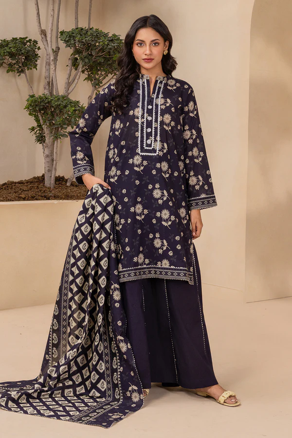 Buy 3 Piece Printed Lawn Shirt Shalwar Dupatta in Blue Color